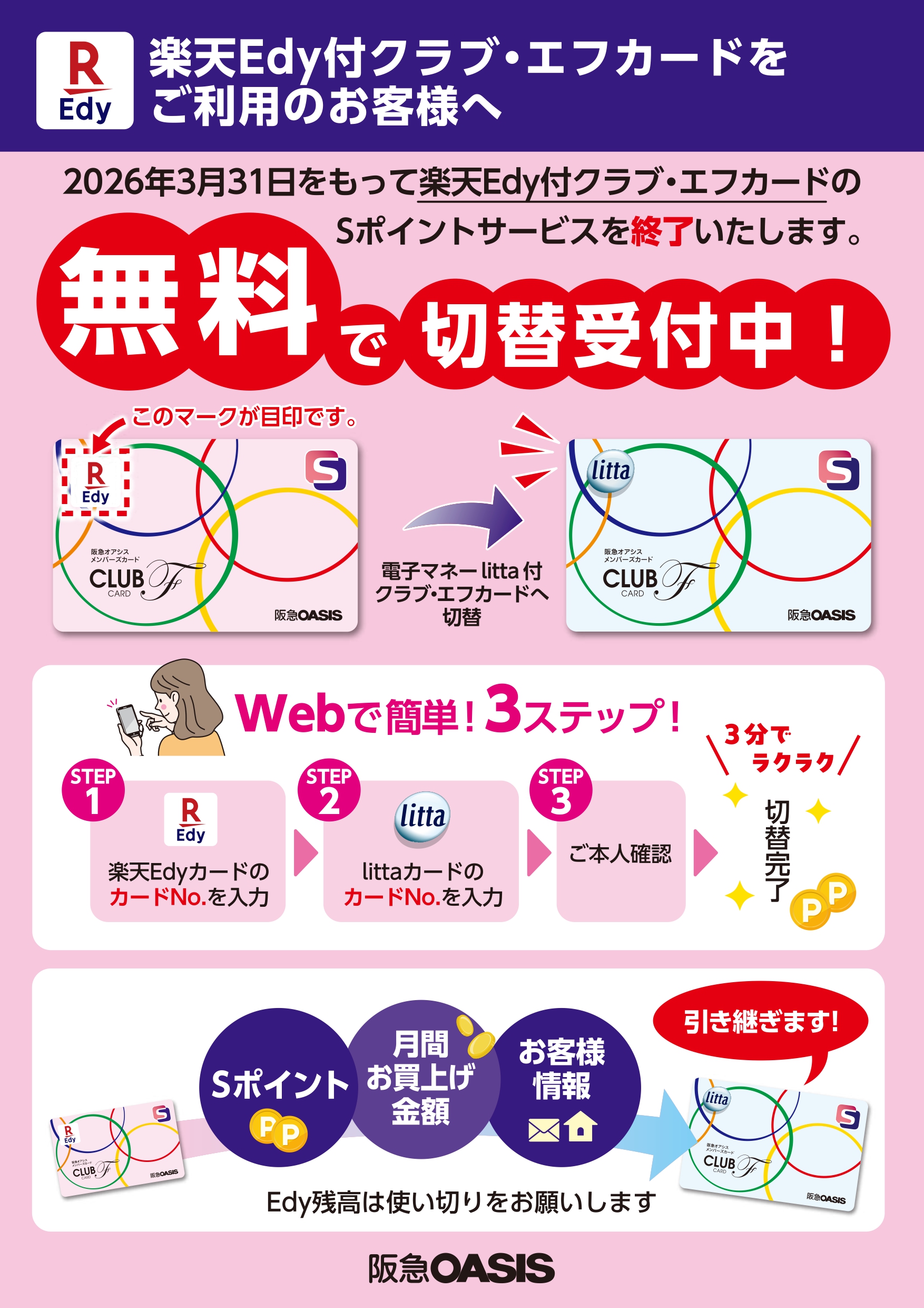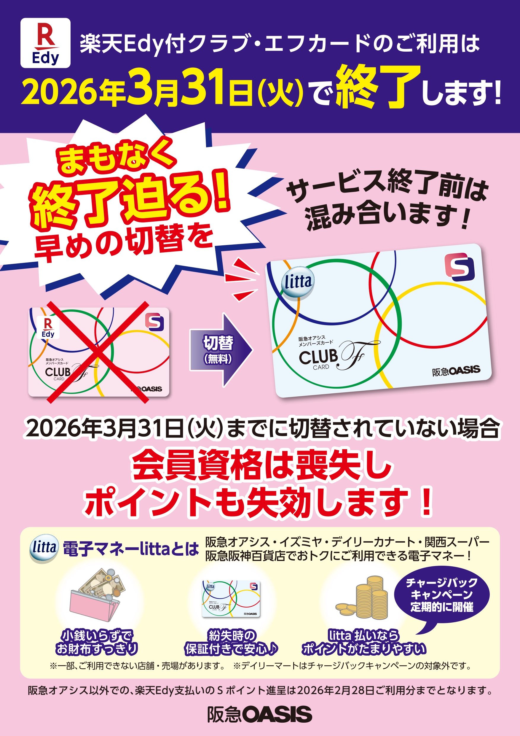 2026.01.01 なし 楽天Edy付クラブ・エフカードのご利用は2026年3月31日(火)で終了します! ▶Web切替はこちらから ▶Webでカンタン!切替ガイドはこちらから 前の記事 次の記事 特集一覧へ戻る