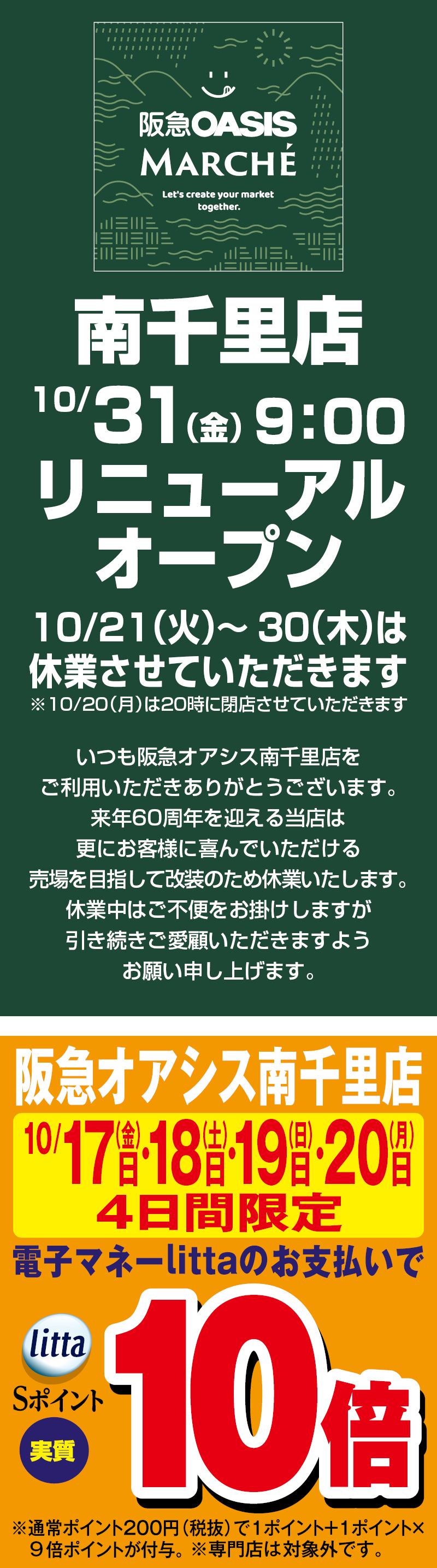 南千里店 10月31日(金)9:00リニューアルオープン!