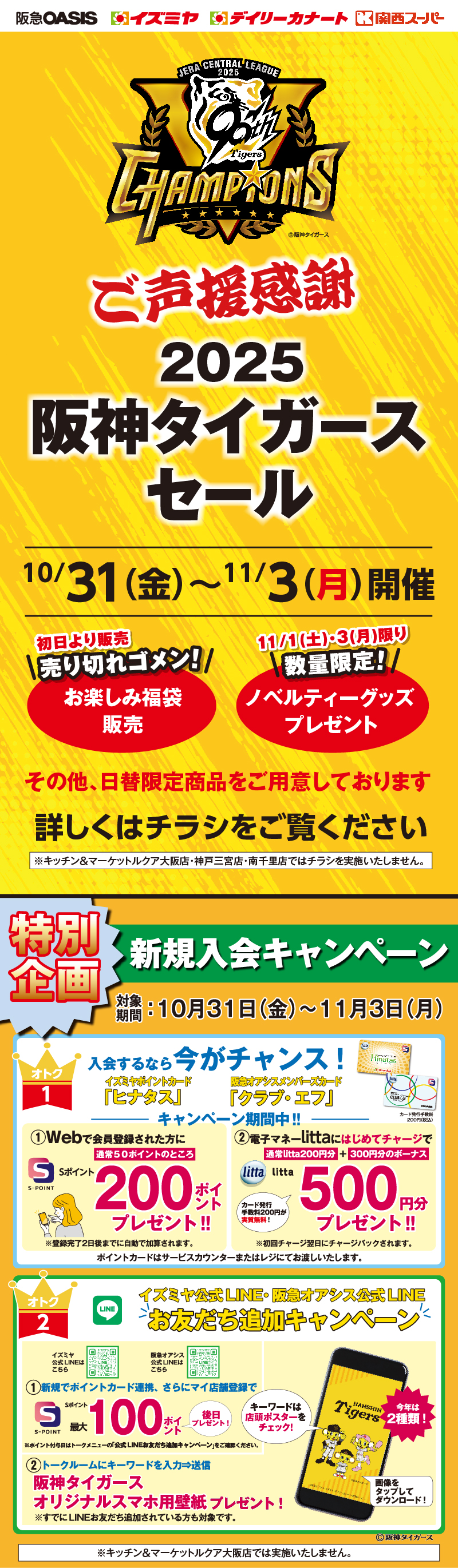 10月31日(金)~11月3日(月)ご声援感謝 2025阪神タイガースセール開催