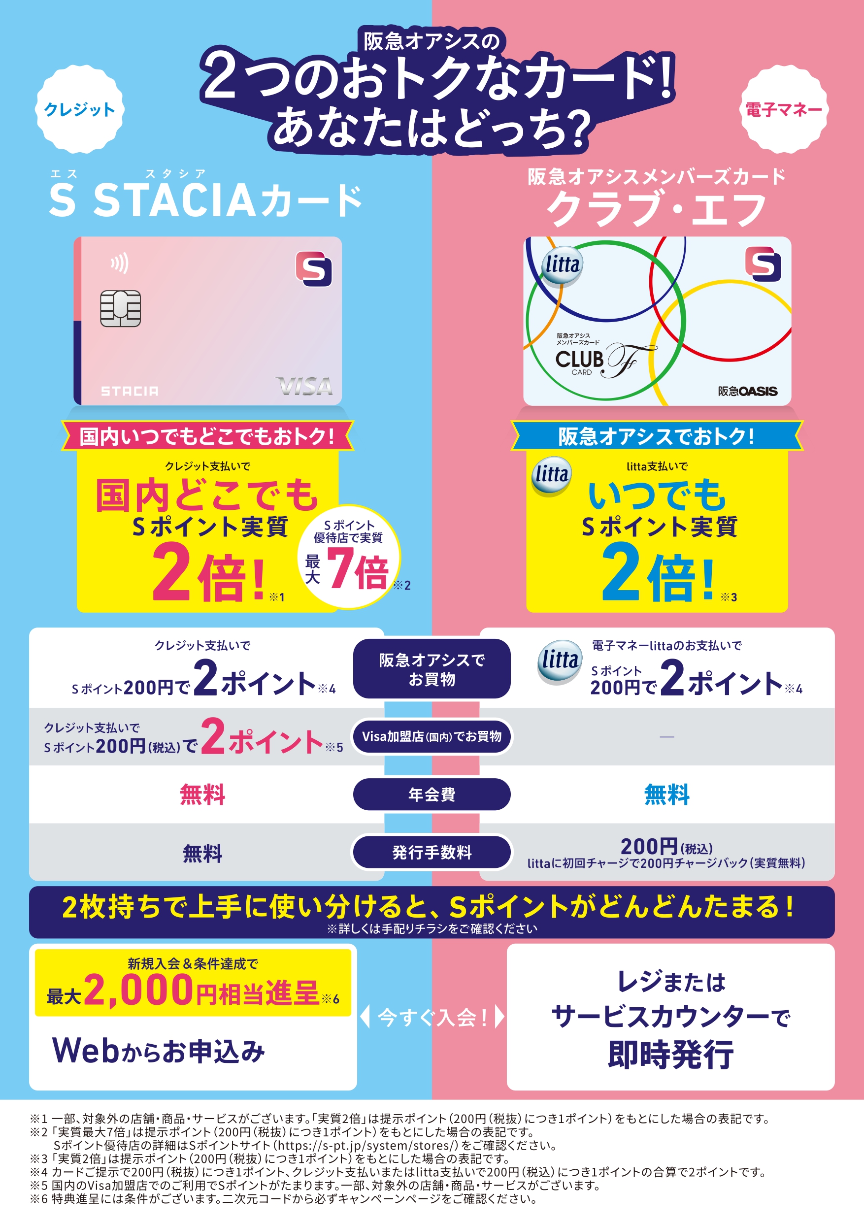 2026.04.01 特集 阪急オアシスの2つのおトクなカード!あなたはどっち? ※キッチン&マーケット ルクア大阪店・阪急オアシスデイリーマート 富田店・伊丹大鹿店・守口店は、litta支払いで水・土・日実質4倍ポイントは実施しておりません。 ▶SSTACIAカードのお申し込みはコチラ ▶ポイントおまとめサービス詳細はコチラ ▶クレジットチャージ詳細はコチラ 前の記事 次の記事 特集一覧へ戻る