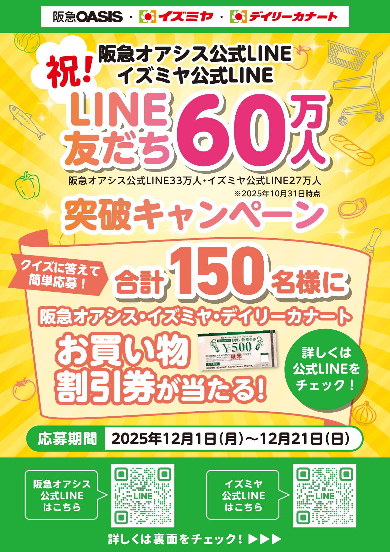 2025.12.01 キャンペーン 祝!阪急オアシス公式LINE・イズミヤ公式LINE LINE友だち60万人突破キャンペーン ▼キャンペーンの応募はLINEから!▼ 前の記事 次の記事 特集一覧へ戻る
