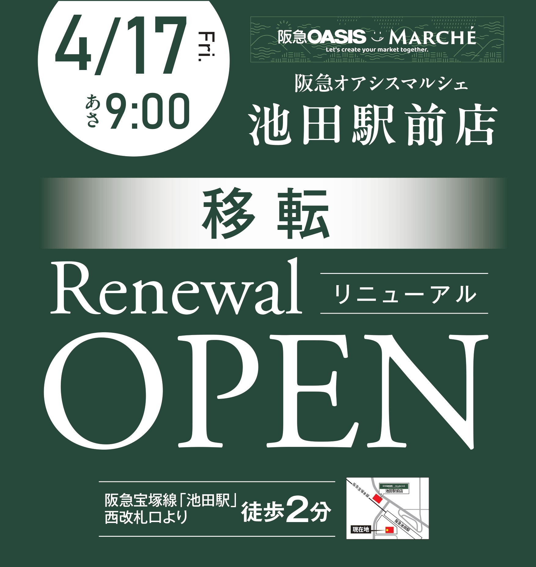 2026.03.30 特集 阪急オアシスマルシェ池田駅前店 移転リニューアルオープンのお知らせ 阪急オアシス跡地にて、4/28(火)関西スーパーデイリーマート池田店が誕生します 次の記事 特集一覧へ戻る