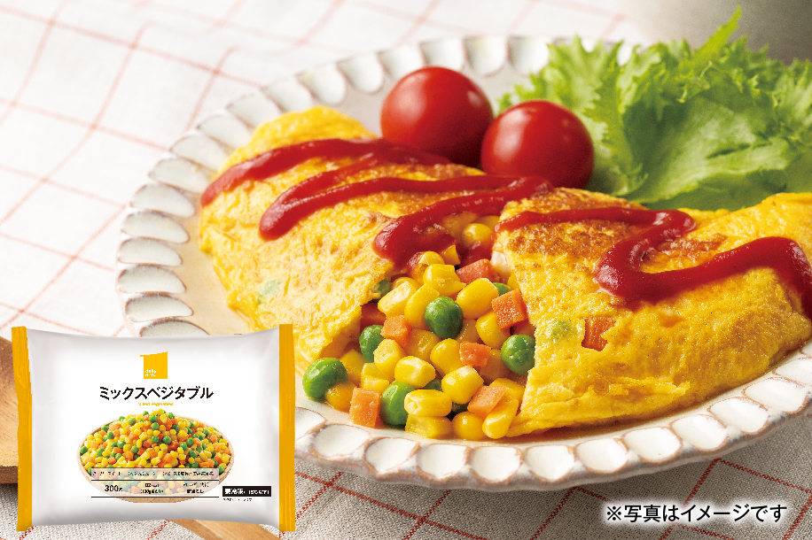 コーン、にんじん、グリーンピースを彩りよく混ぜました。