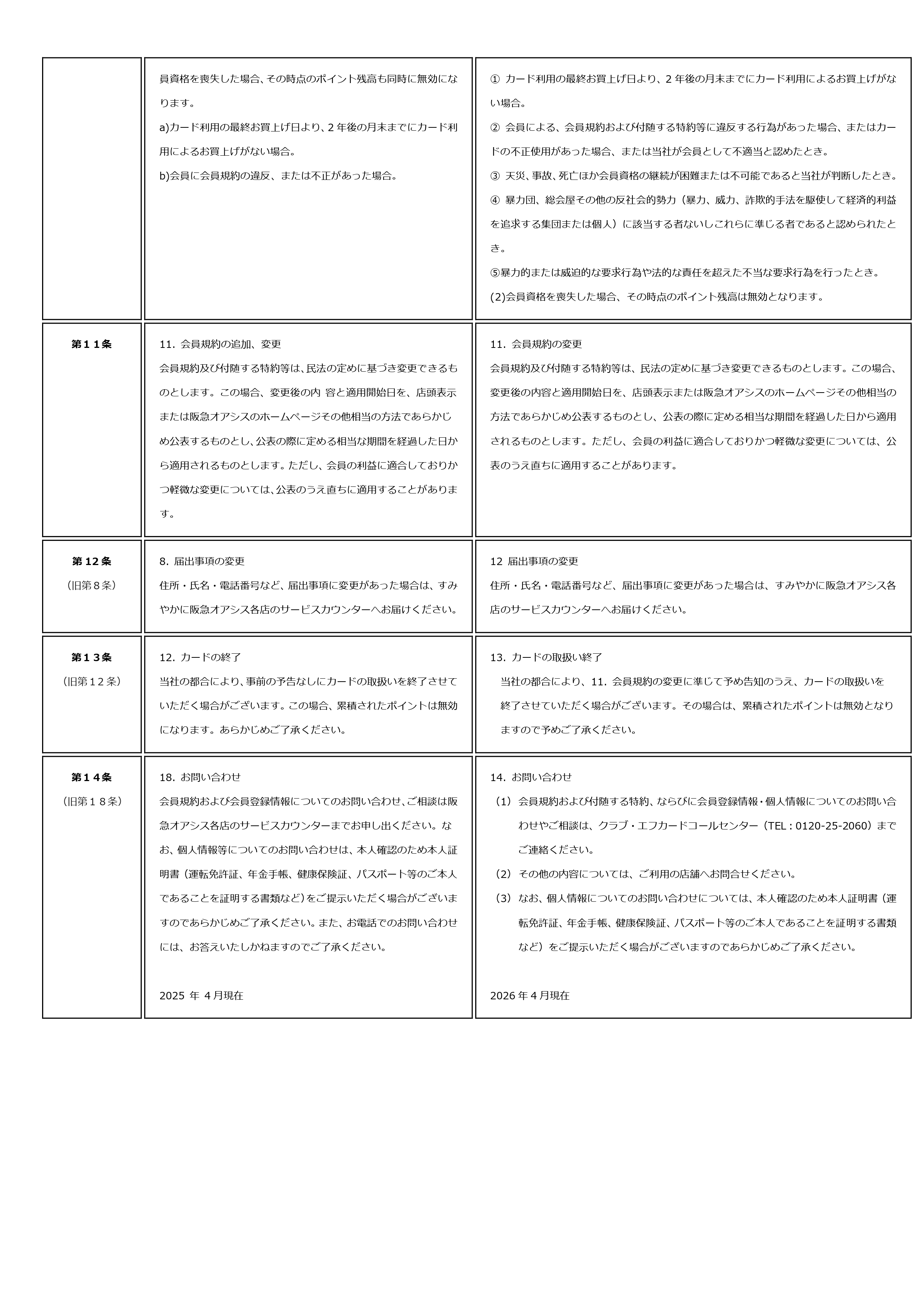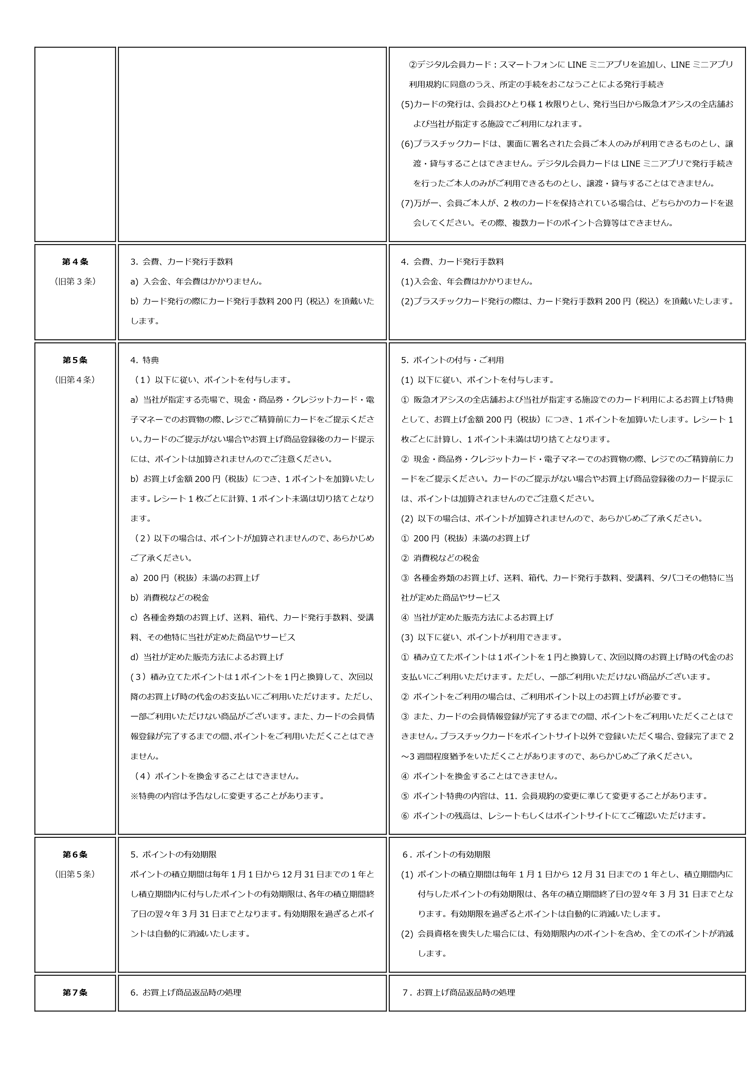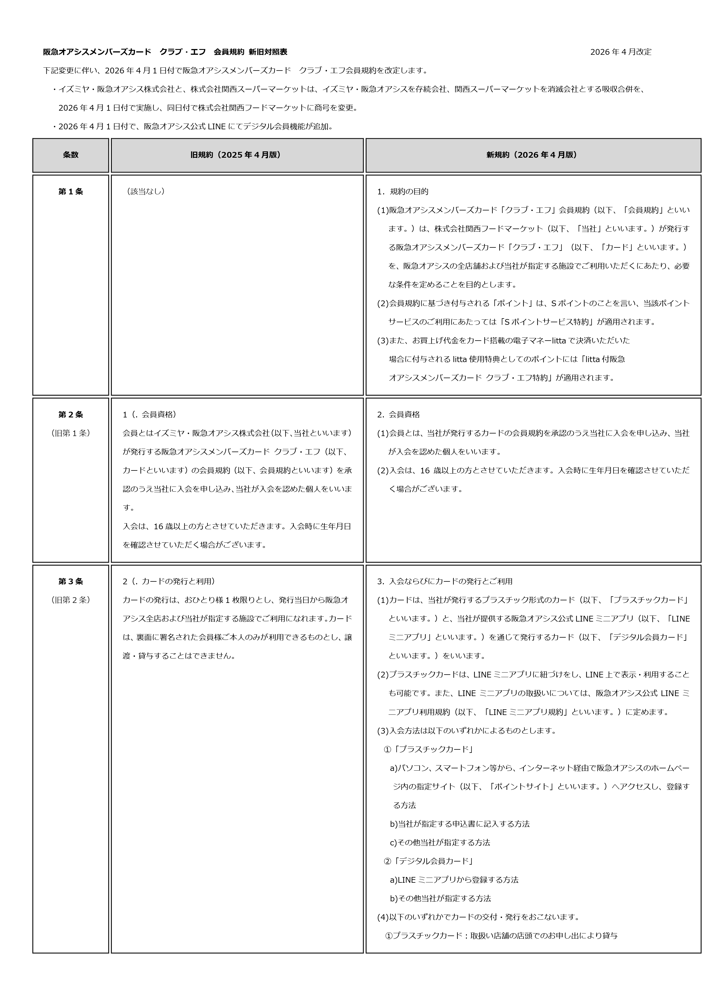 阪急オアシスメンバーズカード クラブ・エフ 会員規約 新旧対照表